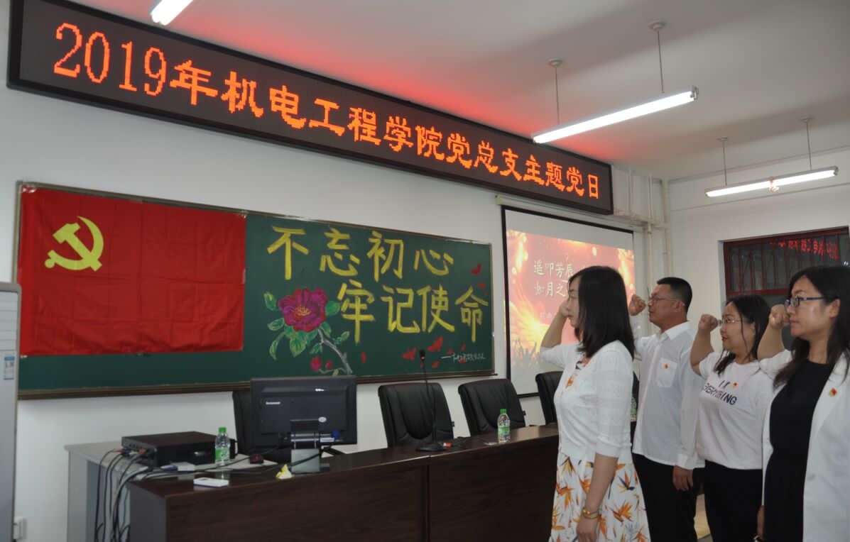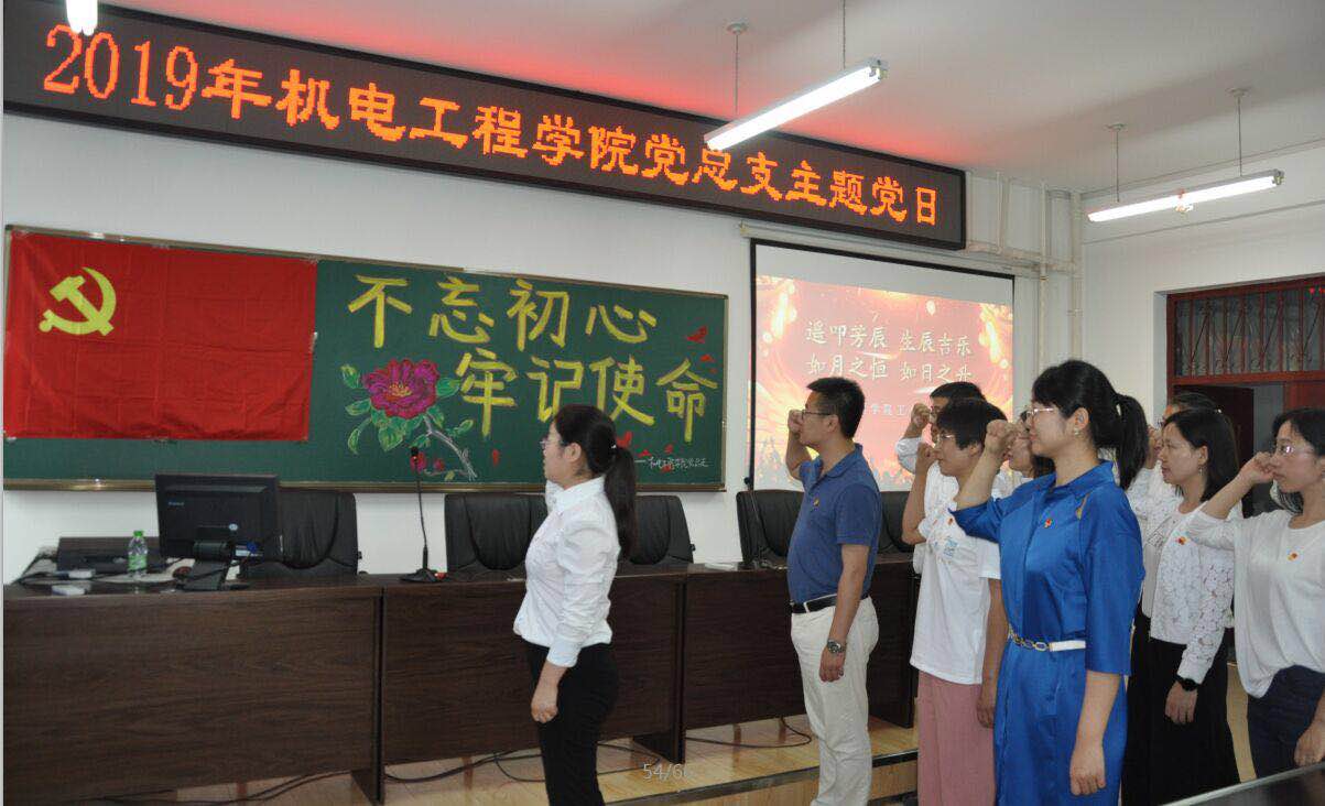 为深入学习贯彻落实习近平总书记在“不忘初心、牢记使命”主题教育工作会议上提出的“守初心、担使命,找差距、抓落实”总要求,进一步弘扬爱国奋斗精神,把爱国之情、报国之志融入教书育人之中,激励广大党员不忘初心、继续前进。机电工程公司党总支以中国共产党建党98周年为契机,于6月26日下午在综合楼306会议室举行“不忘初心 牢记使命”主题党日活动,以“守教育初心 担时代使命”为题由党总支副书记邓雨巍讲授党课,全体党员教师、员工党员、积极分子参加了党课。