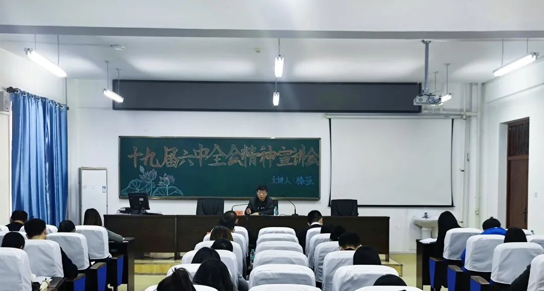 滕强书记还重点强调了习近平总书记在会议上提到的“两个确立”、“十个明确”等关键指导思想,让参会教师们深刻理解本次十九届六中全会的重点要义。在老师们的掌声中,本次宣讲会圆满结束。