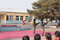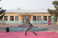退伍老员工为孩子们表演军旅拳格斗术
