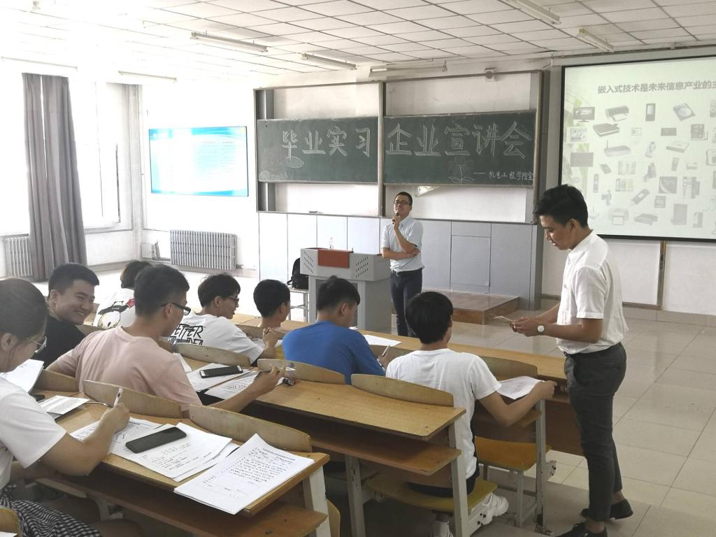 宣讲会伊始,刘永皓经理和崔峰老师就毕业实习事宜进行了动员。随后企业代表就实习待遇、实习要求等进行了详细说明,并对其公司教学特色、学习与生活环境、专业前景进行了详细介绍。最后,王传英老师对宣讲会进行了总结,鼓励所有同学要坚持不懈地朝着自己的梦想努力。