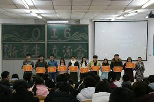 在主持人精彩的开场白后,“2016新老生交流会”正式开始。五名同学与大家分享了自己的学习经验和生活经验:姜中金同学与大家讲述了自己的大学经历,并解答了同学们的疑问;王响同学分析了各学科的重要性并讲解了英语四级方面的问题;孙雨昕同学为同学们阐述了如何过好老员工活;卢国宝同学播放了事先准备好的视频,并鼓励同学们做自己想做的事,不留遗憾;陈曦同学希望同学们明确自己的目标,为自己创造更好的明天。接踵而至的是文明班级的颁奖活动,由2016级辅导员王传英老师亲自为获奖班级颁奖,赢得观众的热烈掌声。活动临近尾声,十大标兵由邸梁、冯琼琼、李亚男、乔中天、孙雨昕、韦晶晶、周影、陈曦、张金鹏、卢国宝等同学荣获,随后,王传英老师为十大标兵颁发奖状。