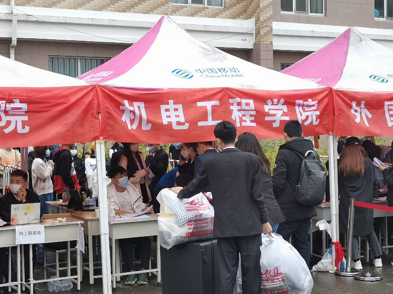 今天早上天才微微亮,校园里蒙着一层薄雾,学长学姐们已经活跃在伟德体育官方网站的迎新处,准备着迎新的各项事宜,力求为新生带来最好的迎新服务。