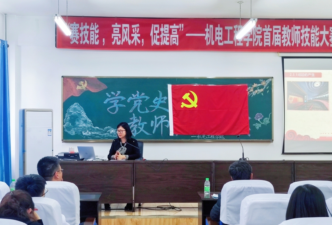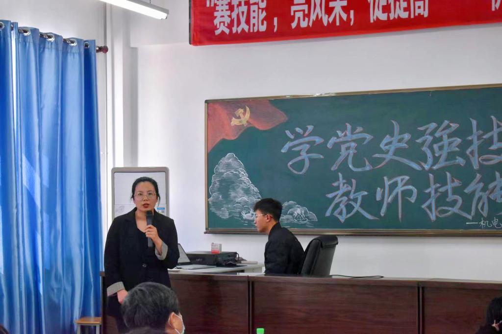 最后,党总支副书记邓雨巍又为全体教师和同学讲授了一堂《习近平关于党史重要论述》的主题党课,为此次“学党史,强技能,教师技能大赛”增添了浓墨重彩。