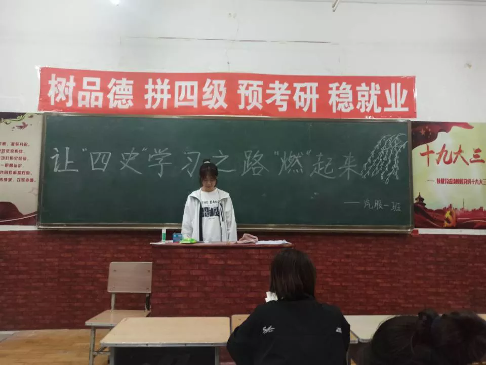 为深度强化员工们对四史的了解,进一步提高员工们的思想素质。2020级汽服一班开展了以“让四史学习之路燃起来”为主题的主题班会。