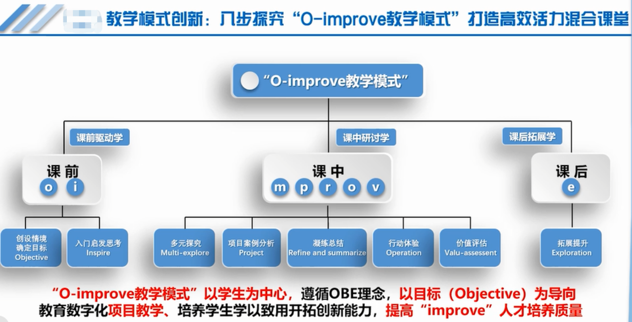 本次比赛得到人事处(教师发展中心)高度重视,经校首席督学王晖教授、省级教学名师冯展吉教授、张晓梅教授精心指导、公司教学委员会多次打磨。大学物理课程组基于实践教学经验,逐渐形成了目标明确、思路清晰、内容具体的信息化教学改革创新思路,提出了适用于高校理工科专业基础课程的“O-improve”混合式教学设计模式,能够为同类课程混合式教学的开展提供参考和借鉴。