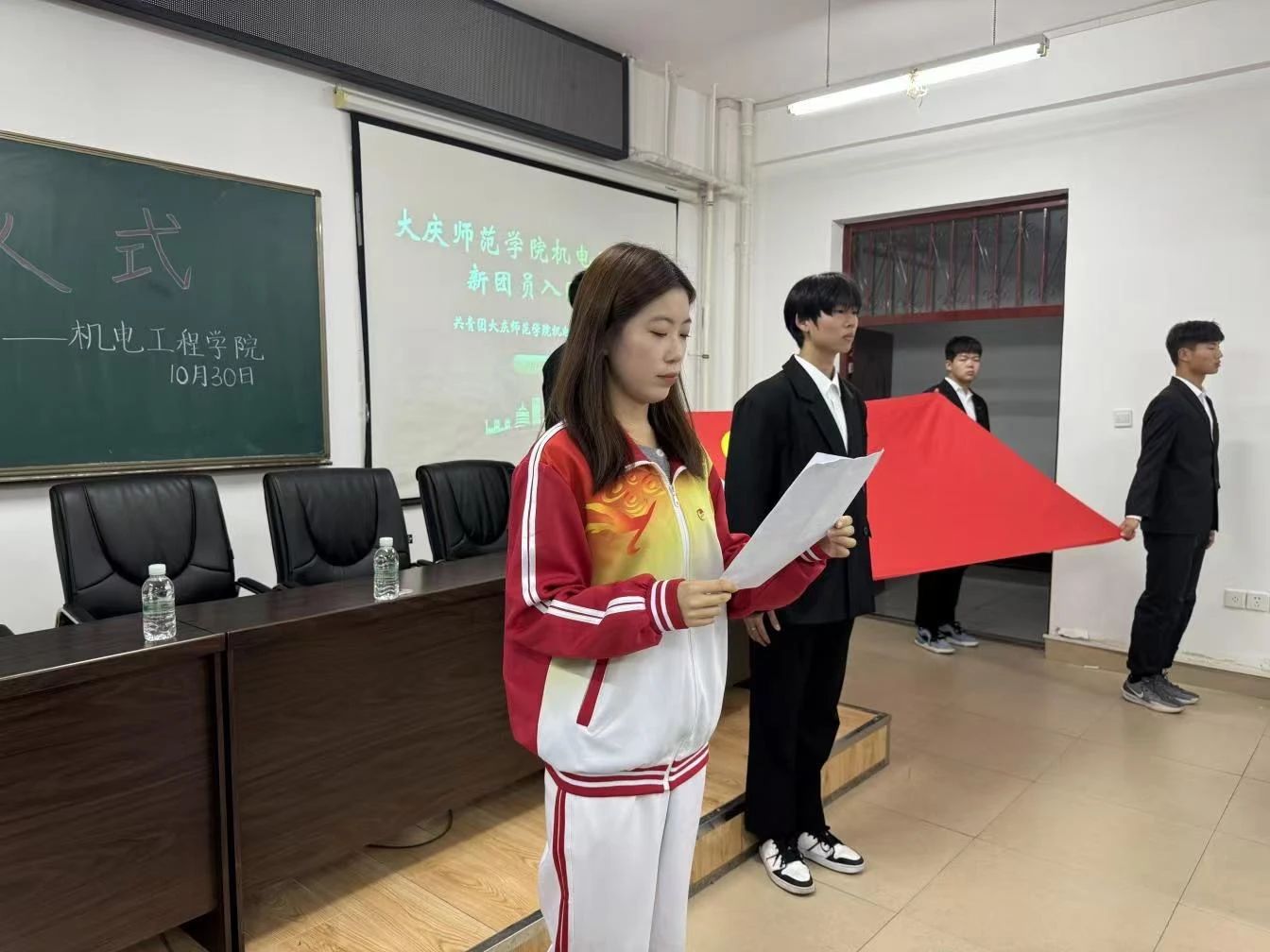 为深入贯彻习近平新时代中国特色社会主义思想,进一步继承和发扬共青团优良传统,增强团组织的凝聚力,增强新团员的荣誉感、归属感。伟德体育官方网站于2024年10月30日在综合楼306教室举行2024年下半年新团员入团仪式。曲晓磊老师和新老团员代表参加此次活动。