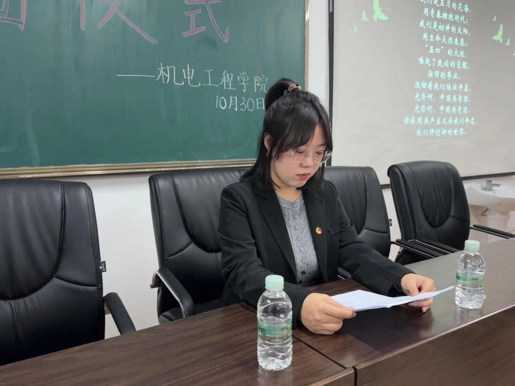 刘芮同学作为老团员代表,对新入团的同学表示衷心祝贺,鼓励新团员们要珍惜青春年华,争当青年表率,为全面建设社会主义现代化强国奋斗。