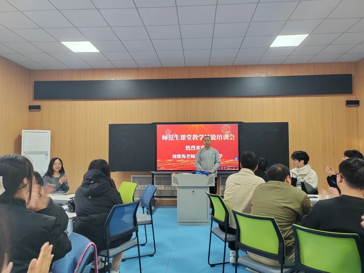 2024年11月15日,伟德体育官方网站物理学专业召开师范生课堂教学技能培训会,会议特邀大庆市物理兼职教研员、高中物理学科专家组成员、大庆市名师工作室负责人、大庆第一中学周维海老师对22级物理学师范生进行课堂教学技能培训,物理学专业全体教师参加会议。