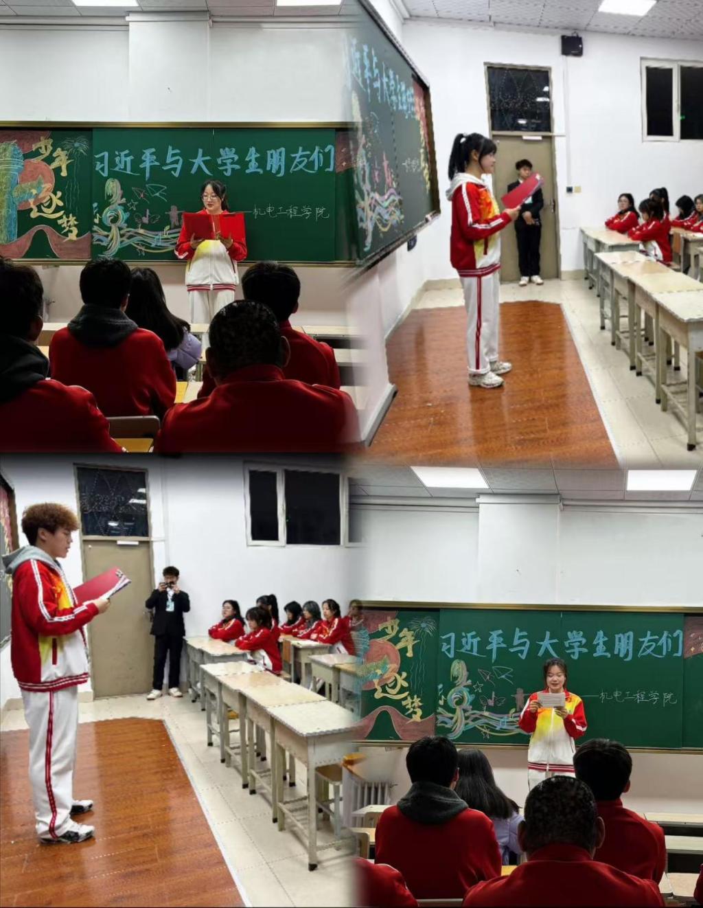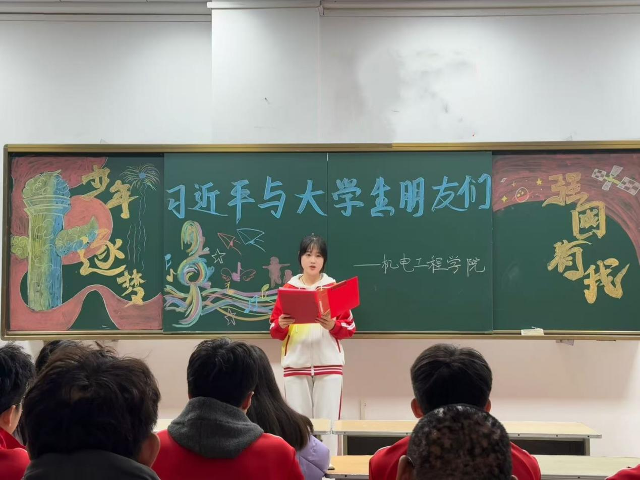 读学:同学们通过学习和领悟习近平总书记与老员工交流时的金句和教诲,深刻感受到国家对青年一代寄予的厚望和重托,激励同学们成为有本领、有理想的新时代好青年。
