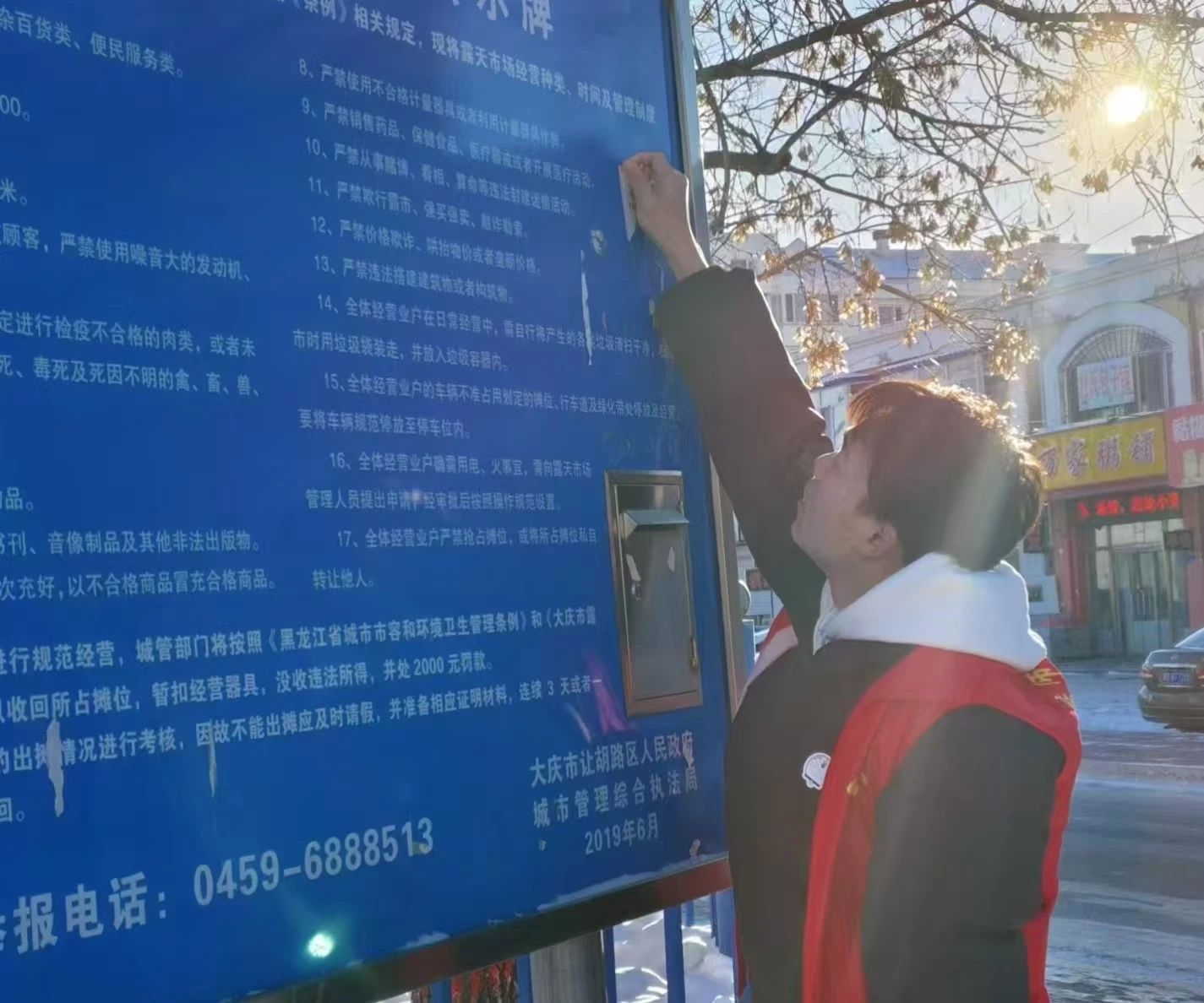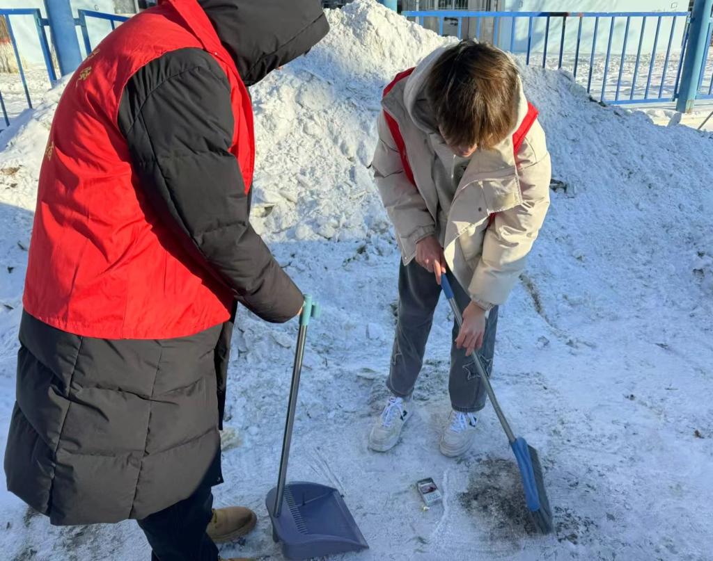 活动开始,同学们分工明确,迅速行动起来,对社区的各个角落展开全面清洁。有的同学将街道上的烟头、纸屑等杂物扫聚成堆,有的同学将告示牌上的广告贴纸逐一撕下,有的同学将公共设施反复擦拭。在同学们齐心协力的努力下,社区环境得到了显著改善,道路更加整洁,公共区域也更加卫生。