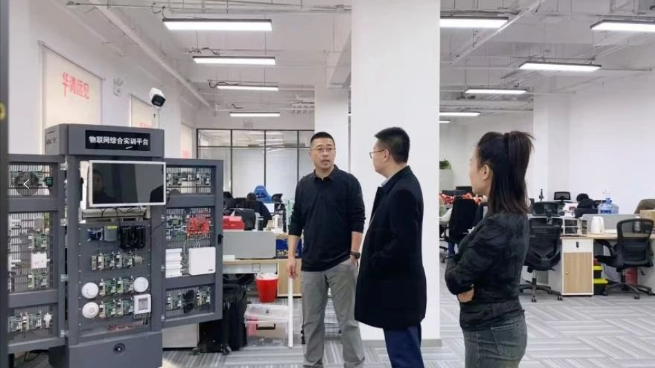刘永皓经理在该公司翟总经理和史经理的引领下,参观了公司的办公环境和教学设施。对方详细介绍了企业基本情况、业务范围以及员工职业发展等问题,并表达了围绕校企协同育人模式构建校企融合发展共同体的期望,同时就深化校企合作模式与路径、推进人才培养质量提升、实现多方共赢等话题展开交流。